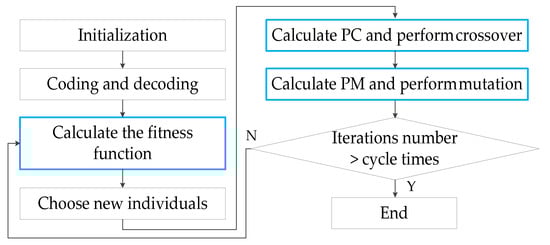 A genetic algorithm (GA) is a stochastic search optimization algorithm. However, the conventional GA has the disadvantage of easy converging to the local optimal solution. An error-limited genetic algorithm (ELGA) with two improved strategies is proposed in this work. One strategy is to use a fitness function of error limited. The fitness function determines the evolution direction and efficiency of the algorithm. The other strategy is to use a catastrophe method after preserving an optimal solution to adjust the adaptive crossover probability threshold (PC) and the adaptive mutation probability threshold (PM) to fixed larger values. Using larger PC and PM produces more new individuals and can help escape local optimal solution. In each generation, an optimal solution larger than or equal to the previous generation is obtained. After many iterations, an optimal solution to meet the site requirement is achieved. As shown in Figure 2, ELGA’s improvements over GA are highlighted in blue.