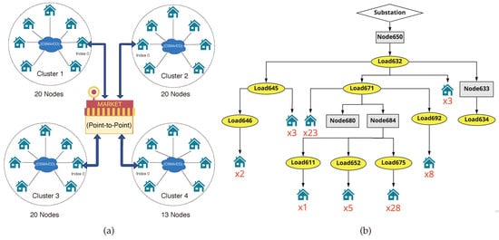 (a) The network model and (b) the power grid model of IEEE 13 node test feeder with 73 Houses.