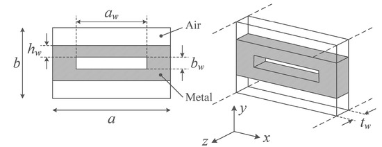 - Yang, R.; Omar, A.S. Investigation of multiple rectangular aperture irises in rectangular waveguide using TExmn-modes. IEEE Trans. Microw. Theory Tech. 1993, 41, 1369–1374. [Google Scholar] [CrossRef]