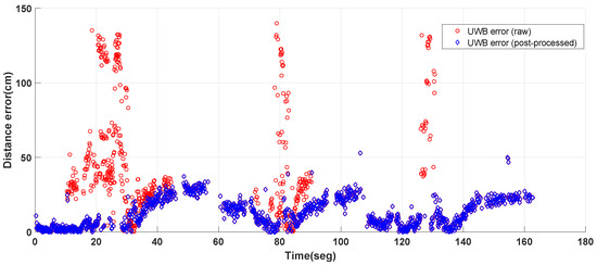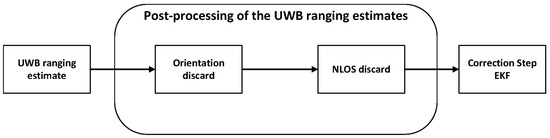 - An Extended Kalman Filter (EKF) has been built for fusing the UWB ranging estimates with the on-board data of the vehicle. Moreover, an algorithm for post-processing the UWB ranging estimates has also been developed. The combination of both algorithms computes an accurate and reliable position over time, enhancing the individual performance of the different data sources.