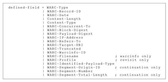 Defined-fields in the WARC.