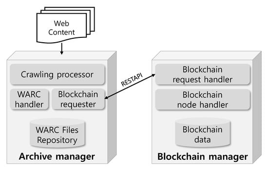 BCLinked web archiving system consists of archive manager and blockchain manager as shown in Figure 9. The subcomponents in the archive manager and the blockchain manager can be classified into following below cases: