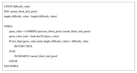 Algorithm of PoW (Proof of Work).