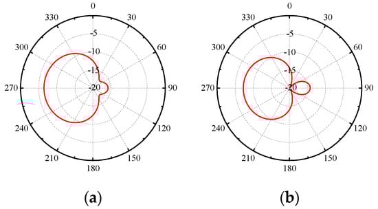 E planes of the optimized Yagi operating at two radiation nulls. (a) 3.32 GHz. (b) 4.66 GHz.