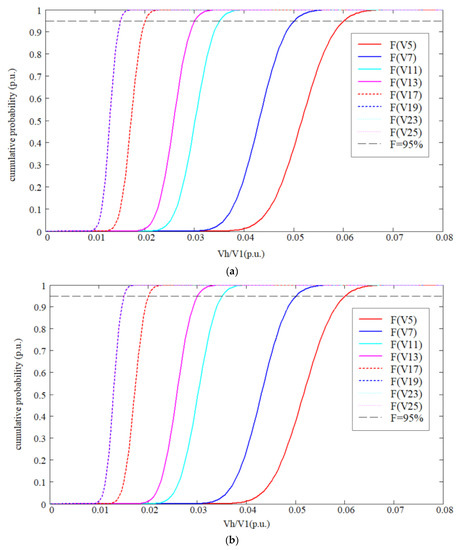 However, each of these three criteria is only one among infinite possible ways to set the voltage distortion level. Once the distortion level is set parametrically or known from measurements in a particular point of common coupling (PCC) in the grid or internal point of coupling (IPC) in a plant, the method proposed here—namely Equations (31)–(39)—can be applied anyway.