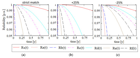- values of the 1st percentile of time to failure more or less broadly above design life (thus values of reliability at design life more or less broadly >99%) in all case studies for the capacitor—apart case (a) with voltage harmonics 25% above the limits in [4] (see bold numbers in Table 3);