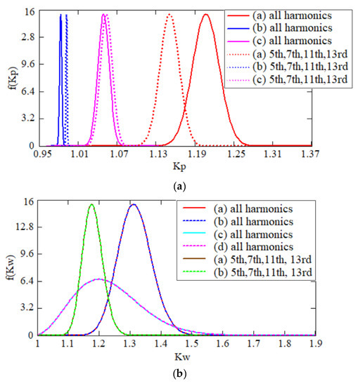 - f(Kp, Kw, Kr) is the multivariate pdf of Kp, Kw and Kr, correlated in turn with f(V1,..,VN; ϕ1, …, ϕN), the multivariate pdf of rms values, V1,..,VN, and phase-shift angles ϕ1, …, ϕN of voltage harmonics;