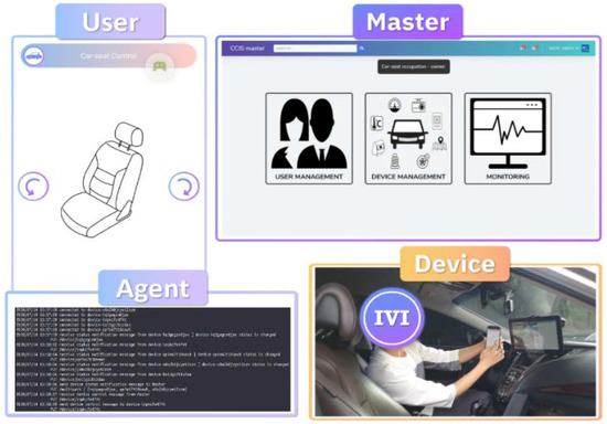 The C-IVI system consists of IVI master, IVI user, and IVI devices, as shown in Figure 2. The IVI user accesses the IVI master using a smartphone, and the protocol uses the HyperText Transfer Protocol (HTTP). The IVI master manages the IVI device based on the LWM2M framework, and the communication with the IVI device uses CoAP. The IVI master connects the IVI device and the IVI client and manages all IVI devices in the vehicle. IVI users can access and control the IVI device only through the IVI master.