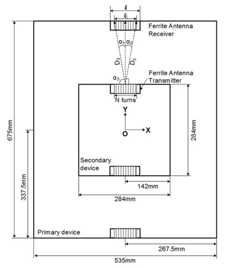 Figure 12. Therefore, considering the location of the primary device installed at the parking point, the mounting of the ferrite antenna is optimal in the direction ±y of the primary device and the secondary device. In addition, the minimum number of ferrite antennas to be mounted on the primary device and the secondary device is two for accurate direction recognition [