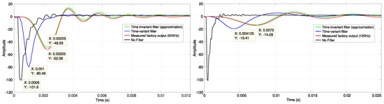 Impulse responses of filtering systems comparison for 500 Hz and 125 Hz.