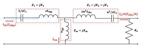 The S-S resonant tank is expressed as the primary reactance. As a result, the equivalent circuit of S-S topology is shown in Figure 1. The primary and secondary side resonant circuit can be defined as in Equations (4) and (5).