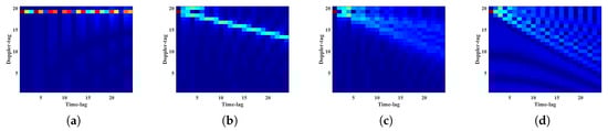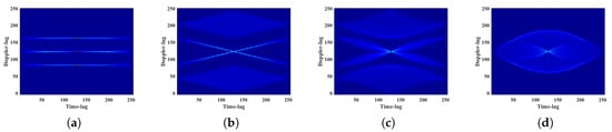 Representative slice of ambiguity function (AF-RS) of several typical simulation signals. (a–d) are AF-RS of , , , .