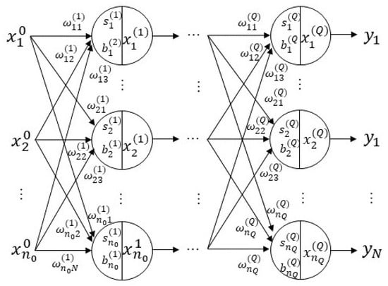 Figure 6 shows the structure of a simple neuron network. denotes the weight from jth neuron in th layer to ith neuron in qth layer, denotes the bias of ith neuron in qth layer, and is the weighted input of ith neuron in lth layer defined as: