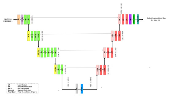 Traditional U-Net architectures use a dual path approach for retrieving and localize the overall image context. A contracting path has been used to capture the context and a symmetric expanding layer has been used for enabling precise localization [35]. This paper discusses a model that differs from the traditional U-Net model in the following ways: