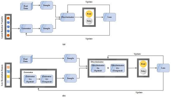 Basic flow of (a) the GAN model and (b) the proposed GAN model.