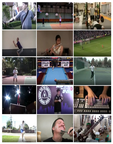 UCF101 is an action recognition dataset consisting of 101 action classes [32]. The UCF101 data has 13,320 videos from YouTube with various camera motions, backgrounds, poses, objects and visual effects. We split the data into 70% for training and 30% for testing. The 101 categories were subdivided into 25 categories. Each category had a maximum of seven videos of a particular action with some common features.