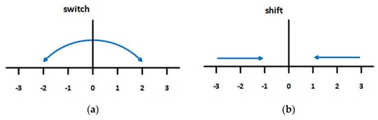 In our approach, negations are processed in a new way, using the interactivity of switch and shift negation [26]. Switch negation only turns polarity to its opposite (e.g., from +2 to −2), as illustrated in Figure 6a. Shift negation is more precise than switch negation, only shifting the polarity of a connected word towards the direction to opposite polarity, as illustrated in Figure 6b.