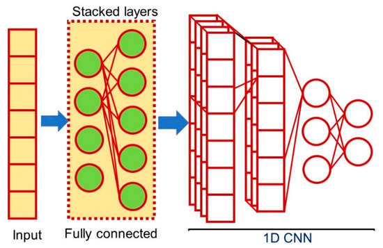 Liu et al. [38] first proposed a 1D FCLF-CNN to improve the classification performance of structured datasets. In this network, the input layer is first connected to several fully connected layers, followed by a typical CNN. Structured datasets are similar to disrupted image data, which appear to have no local structure. In the 1D FCLF-CNN, the fully-connected layers before the convolutional layers are seen as an encoder. Liu et al. [38] also used a fully-connected layer as an encoder by adding a Softmax layer, which normalizes the output of fully-connected layers to 0–1, where 0 means that the degree of confidence is the lowest, and 1 the highest, thereby providing an important degree of confidence for classification [39]. The encoder could transfer raw instances into representations with a better local structure. Therefore, they believed that a 1D FCLF-CNN using a fully-connected layer as an encoder would offer better performance than a pure 1D CNN. Thus, 1D FCLF-CNNs represent an encoder-CNN stacking method capable of providing better performance than pure CNNs, particularly for structured data.