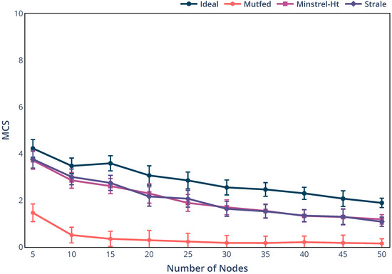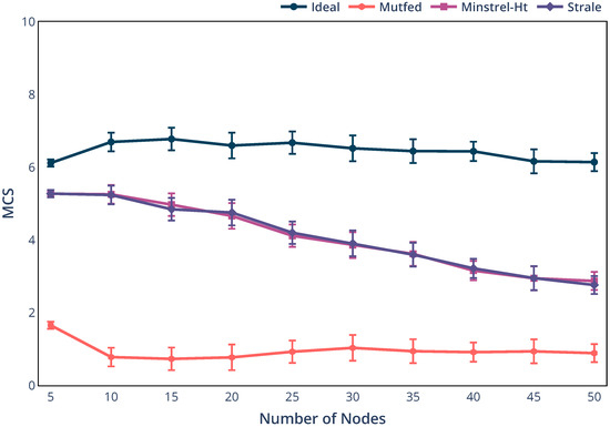 Mean value of the modulation and coding schemes (MCS) used by the nodes.