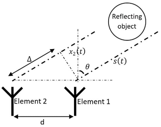 The main features of the MIMO techniques exploit the AoA detection capabilities that are in turn based on the measurement of phase differences. Let us consider an object generating an electromagnetic wave directed toward and detected by a two-element antenna array, separated by a distance d.