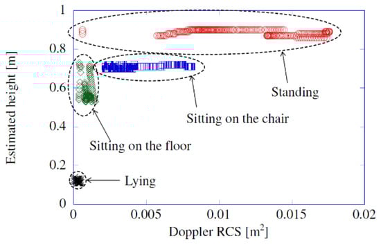 Moreover, the training data achieved from the height and the Doppler radar cross section (RCS) and reported on the scatter diagram of Figure 12, demonstrated that the postures do not have overlapping distributions.