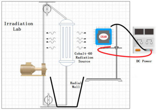 The operation procedure of TID experiments can be described as Figure 10, during preparation for irradiation test, Cobalt-60 Irradiation Source remains in a Radial Well far away from earth surface and SRAM chips are placed on a bracket with supply powered off. Then the chips are powered up and Cobalt-60 Irradiation Source is raised up. Therefore the SRAM chips will hold on power-on values during irradiation until destructed by accumulated damage for a large gamma dose (e.g., 100 Krad (SiO2)), although no data pattern has been written into them before irradiation.