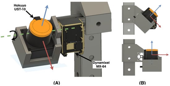 Actuated LiDAR setup. (A) A 3-D perspective view and (B) a 2-D side view of an actuated LiDAR.