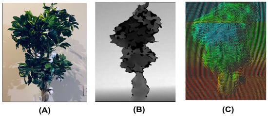 Representative images from the non-contact sensors onboard of MARIA. (A) RGB image; (B) Depth image; (C) LiDAR point cloud.