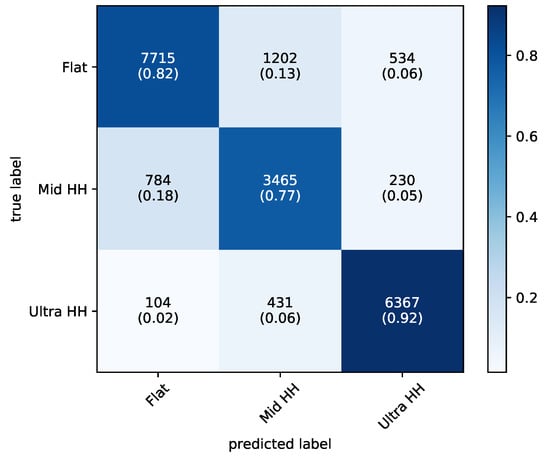 From the confusion matrix in Figure 7, we found that the recognition accuracy of the Flat and Mid HH classes in the cross-view benchmark were relatively lower than the Ultra HH class, which had Precision 0.92 and Recall 0.89.