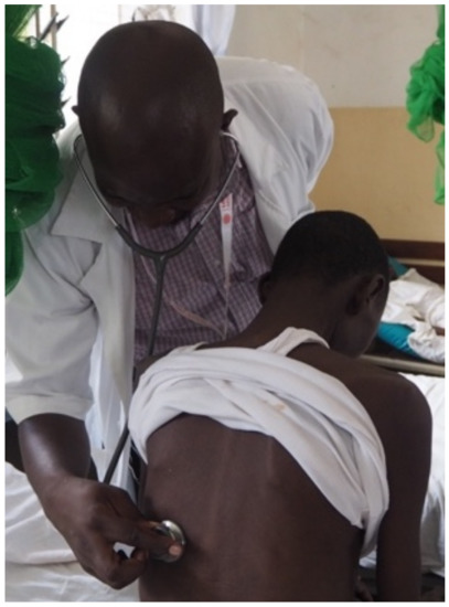 - Ndege, R.; Weisser, M.; Elzi, L.; Diggelmann, F.; Bani, F.; Gingo, W.; Sikalengo, G.; Mapesi, H.; Mchomvu, E.; Kamwela, L.; et al. Sonography to Rule Out Tuberculosis in Sub-Saharan Africa: A Prospective Observational Study. Open Forum. Infect. Dis. 2019, 6, ofz154. [Google Scholar] [CrossRef]