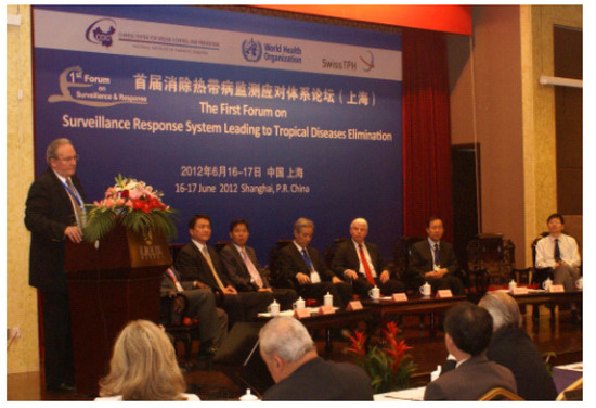 15] triggered an elimination process of major parasitic diseases in the country, with sights first set on malaria and schistosomiasis. The former was achieved in 2021 and the latter will be in 10 years. However, it was understood that sensitive surveillance and response systems would urgently be needed for domestic elimination of tropical diseases. Feeling that the elimination experiences in China could be shared with the global scientific community, Professors Tanner and Zhou proposed an international forum on Surveillance-Response System (SRS) to provide a platform for information exchange on research in tropical disease. The SRS forum grew in importance and became a biannual international conference co-sponsored by the NIPD, Swiss TPH and WHO, with the aim of updating research and activities seeking both national and global solutions to address the challenges ahead. The SRS meetings brought together stakeholders such as scientists, project managers, decision makers, donors and manufacturers, with the first held in Shanghai in June 2012 under the title “SRS Leading to Tropical Diseases Elimination” (