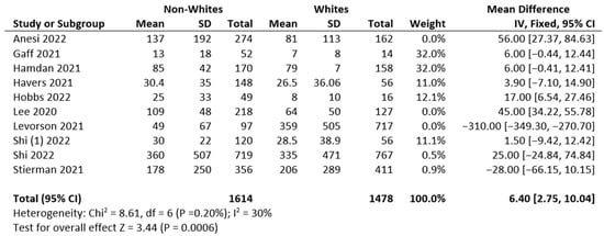 This review is subject to a few potential limitations. First, although this review included multiple databases, it is possible that some studies might have been missed because of restricted inclusion criteria. Second, an inconsistency of effect or association is demonstrated by high heterogeneity prior to excluding results from three studies. Third, as noted in a study by Stierman et al. (2021) [21], the results of studies restricted to countries with complete ethnicity and race data may not be generalizable to the entire U.S. population. Further systematic reviews and meta-analyses should address studies from other countries where racial disparities are common.