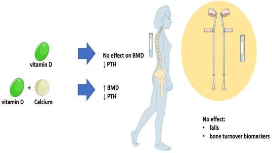 - Reid, I.R. Osteoporosis: Evidence for vitamin D and calcium in older people. Drug Ther. Bull. 2020, 58, 122–125. [Google Scholar] [CrossRef]