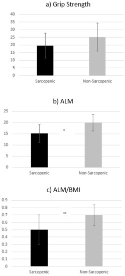 - Misra, D.; Fielding, R.A.; Felson, D.T.; Niu, J.; Brown, C.; Nevitt, M.; Lewis, C.E.; Torner, J.; Neogi, T.; the MOST study. Risk of Knee Osteoarthritis With Obesity, Sarcopenic Obesity, and Sarcopenia. Arthritis Rheumatol. 2019, 71, 232–237. [Google Scholar] [CrossRef]