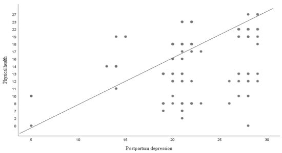 Figure 1 is scatterplot that demonstrate graphic display for the linear relationship between postpartum depression and physical health.