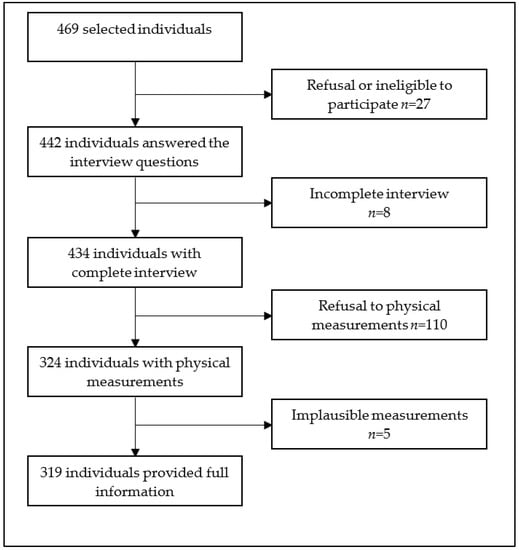 Overall, 469 individuals were invited to participate. Among them, 319 (68.0%) had complete data records and were subjected to further analysis (Figure 1).