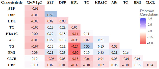 Correlation matrix of CMV IgG and biomarkers (Pearson correlation coefficient).