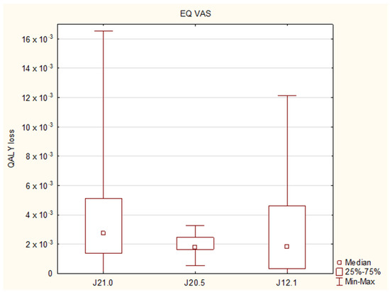 The QALY loss calculated from the EQ VAS revealed a median value of 2.45 × 10