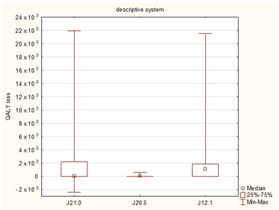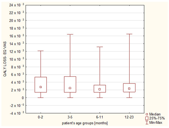 16]. It needs to be underlined that although the previous studies focused on preterm infants and their caregivers, the majority of the RSV cases are observed mostly in otherwise healthy children; thus, the protocol of our study assumed the inclusion of a cohort of children hospitalized in a regular pediatric ward, and the use of the baseline health status assessment (kappa coefficient) practically eliminates the influence of other health disorders. Interestingly, in a few cases, the utilities (and the corresponding QALY losses) calculated in the descriptive system exhibited negative values, which would imply an improvement in the caregivers’ utility due to the child’s hospitalization—this paradoxical phenomenon is easily explicable by the utility calculation formula, which uses value sets; a combination of five answers is assigned to the health status determined in the population study, and, as seen in our study, a particular set of answers in the population study might have been related to a better health status than the self-assessment by the patient in the follow-up [