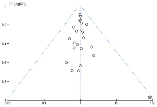 Figure 6 shows that the larger studies cluster around the top of the plot, and smaller studies are spread across the bottom. This is an ideal funnel plot where the included studies are scattered on either side of the overall effect line symmetrically. There is no severe asymmetry to either side, so we conclude that publication bias was not present.