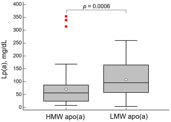 - Afanasieva, O.I.; Ezhov, M.V.; Tmoyan, N.A.; Razova, O.A.; Afanasieva, M.I.; Matchin, Y.G.; Pokrovsky, S.N. Low Molecular Weight Apolipoprotein(a) Phenotype Rather Than Lipoprotein(a) Is Associated With Coronary Atherosclerosis and Myocardial Infarction. Front. Cardiovasc. Med. 2022, 9, 843602. [Google Scholar] [CrossRef] [PubMed]