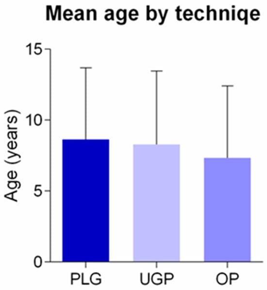 Figure depicting the mean age distribution of our participants, based on the adopted insertion technique.