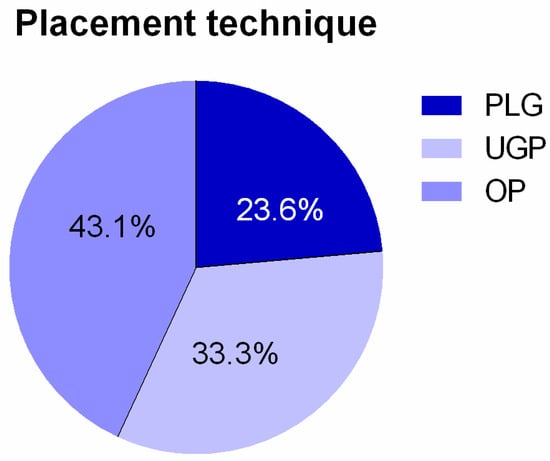 Figure representation, depicting the percentage of each placement technique for the central venous catheters.