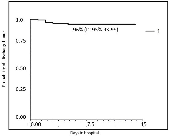 Figure 1 and Figure 2 report the probability of treatment success (discharge home without transfer to a hub hospital with PICU or NICU): 96% for all patients (95% CI 93–99); 94% (95% CI 87–98) for RSV-positive; and 98% (95% CI 95–100, p = NS) for RSV-negative patients when we stratify according to RSV infection.