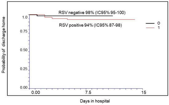Probability of treatment success (discharge to home) in RSV-positive and RSV-negative patients.