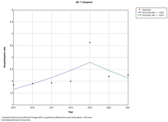 Trend in hospitalization rate shown by joinpoint regression model reporting Annual Percentage Change (APC).