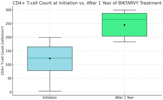 CD4+ T-cell count at initiation vs. after 1 year of BIKTARVY® treatment.
