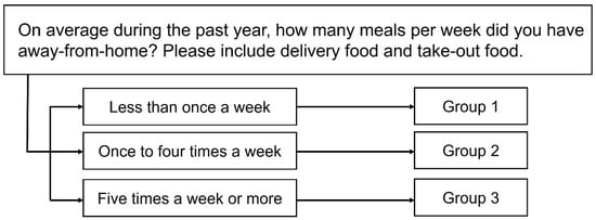 Frequency of away-from-home meals was asked with a questionnaire item. Each participant was categorized into one of three groups according to the frequency of away-from-home meals.