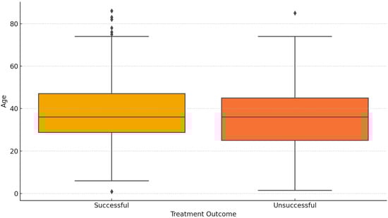 Age distribution across treatment outcomes.