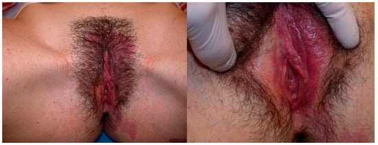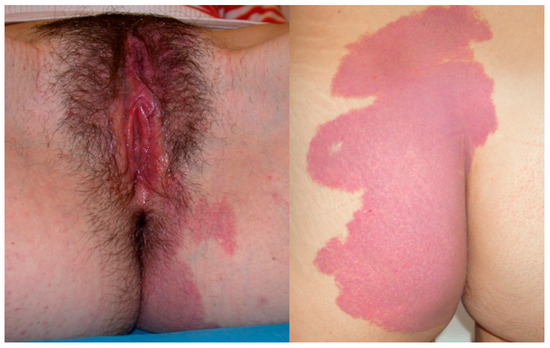- Dangle, P.P.; Pandya, L.K., IV; Firlit, C.F. Bilateral Asymptomatic Incidental Vulvar/Labial Hemangioma: Kissing Hemangiomas. Available online: https://journaldatabase.info/articles/bilateral_asymptomatic_incidental.html (accessed on 7 November 2023).